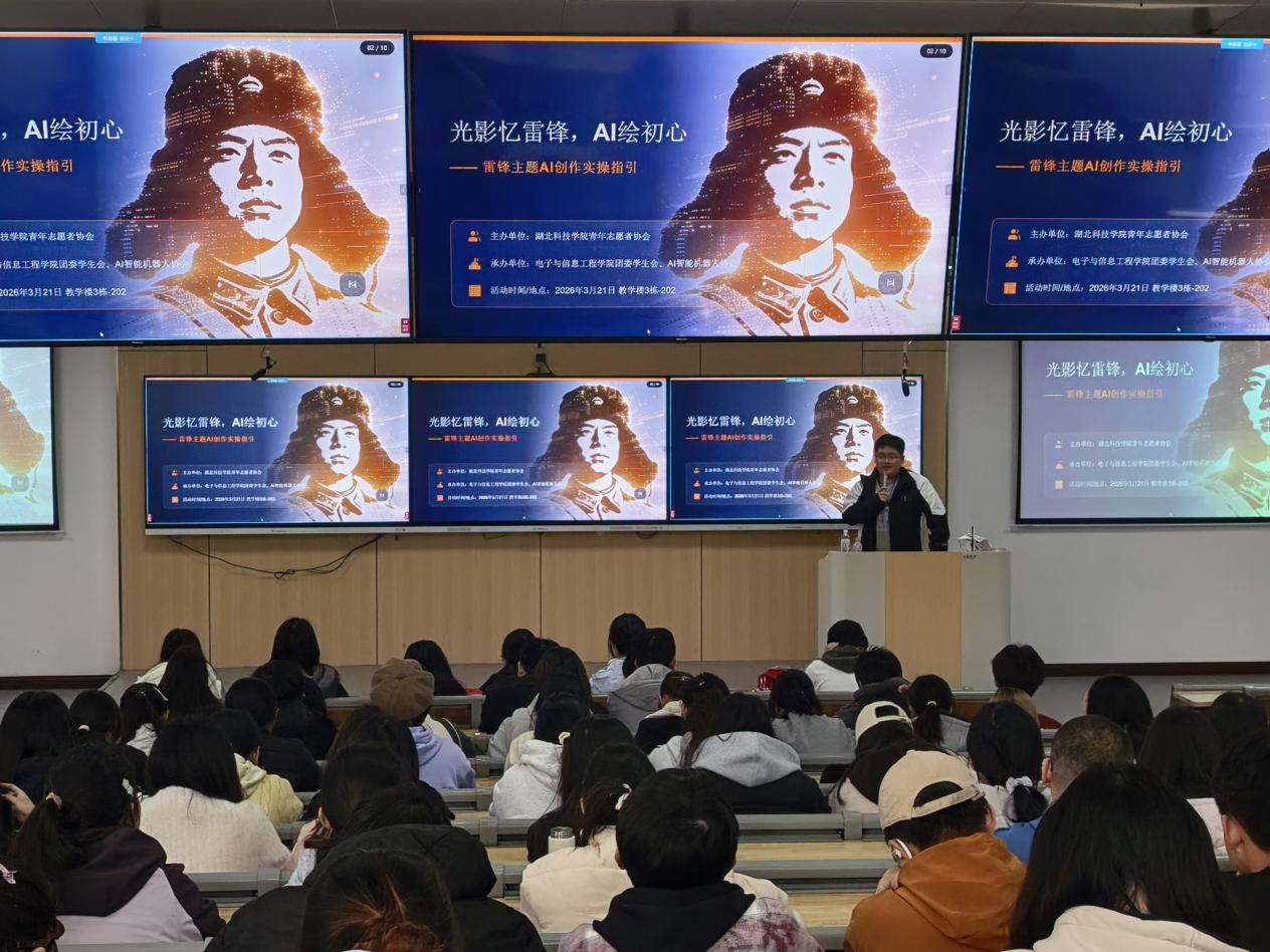 为打破传统红色教育的单向灌输模式,学院创新性打造“红色光影+AI科技”的沉浸式学习场景,于3月21日下午在教学楼3栋202教室开展“光影忆雷锋,AI绘初心”雷锋电影观影暨AI互动体验活动。活动伊始,师生们共同观看经典雷锋主题电影,在光影流转中沉浸式感受雷锋同志平凡而伟大的一生,重温雷锋同志助人为乐、无私奉献、爱岗敬业的感人事迹,深刻体悟雷锋精神跨越时空的永恒魅力。观影结束后,活动进入AI互动体验环节,技术部志愿者现场讲解了AI创作模型的使用原理,展示了以雷锋照片、雷锋事迹为核心素材制作的主题AI短视频,直观呈现了前沿科技与红色文化的融合魅力。活动专门设置了AI互动体验区,邀请师生亲手参与雷锋主题AI素材创作,从主题构思到画面生成,让大家在动手实践中,用新时代的技术手段重新诠释雷锋精神。在随后的分享交流环节,师生们结合观影感悟与AI创作体验,围绕“新时代青年如何践行雷锋精神”展开热烈讨论,大家一致认为,新时代的雷锋精神,不仅是助人为乐的道德坚守,更是立足专业、科技创新、服务社会的责任担当,要以实际行动让雷锋精神在科技浪潮中绽放新的时代光芒。