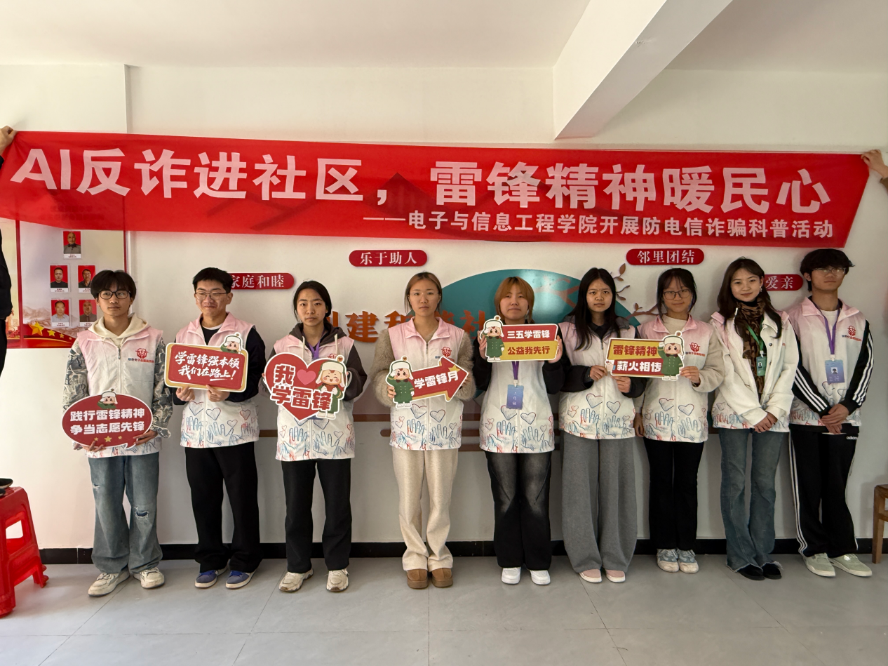 习近平总书记强调,新征程上,要深刻把握雷锋精神的时代内涵,让学雷锋活动融入日常、化作经常,让雷锋精神在新时代绽放更加璀璨的光芒。学院始终立足电子信息与AI专业特色,把“专业所学”转化为“服务所能”,针对社区居民的急难愁盼问题,打造了义务维修、AI反诈、AI助老三大特色志愿服务品牌,用专业技术践行雷锋精神,以匠心服务温暖万家灯火。