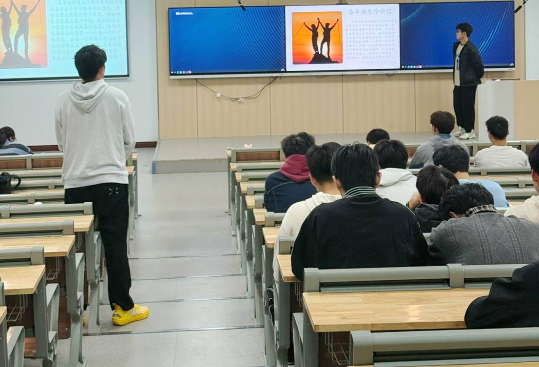 班会中,辅导员结合学院内真实场景展开分享:提及学子间自发形成的学业互助模式,在彼此帮扶中攻克学习难关;也谈到有同学在遇到心理困惑时,通过与老师沟通、参与学院暖心活动,逐步调整状态、重拾活力。这些贴近校园的事例,让同学们直观感受到生命联结的意义与成长的力量,更深刻理解 “自我成长、关怀他人、社会担当” 的生命内涵。