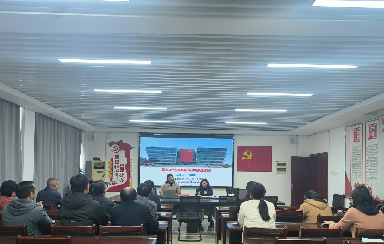 2026年3月11日下午,湖北工业大学常雨芳教授在BBIN宝盈集团会议室与BBIN宝盈集团教师就国家自然科学基金项目申报进行经验交流。