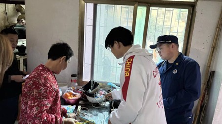 清晨8:30,岔路口社区与金叶社区两组学员准时抵达目的地,在社区工作人员引导下对接工作、等候消防专家。9时许,排查工作正式启动,吴浩然、姚东霖等学长作为主力,带领学员们深入独居老人家中,重点检查飞线充电、插排线裸露、违规使用大功率电器等安全隐患。